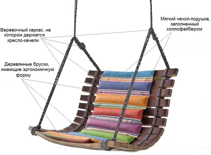 Конструкция кресла-качелей с мягким чехлом-подушкой