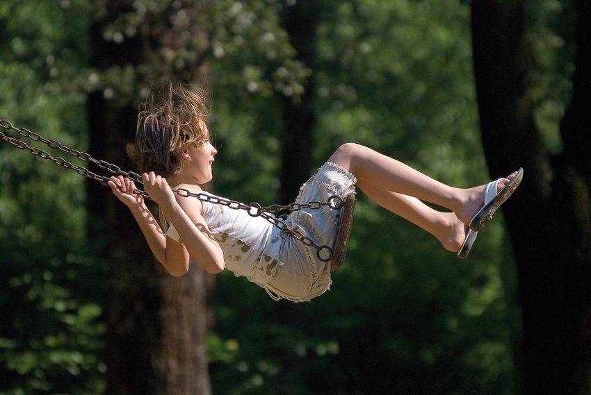 Размещая в саду детские качели, необходимо обеспечить достаточно места для раскачивания