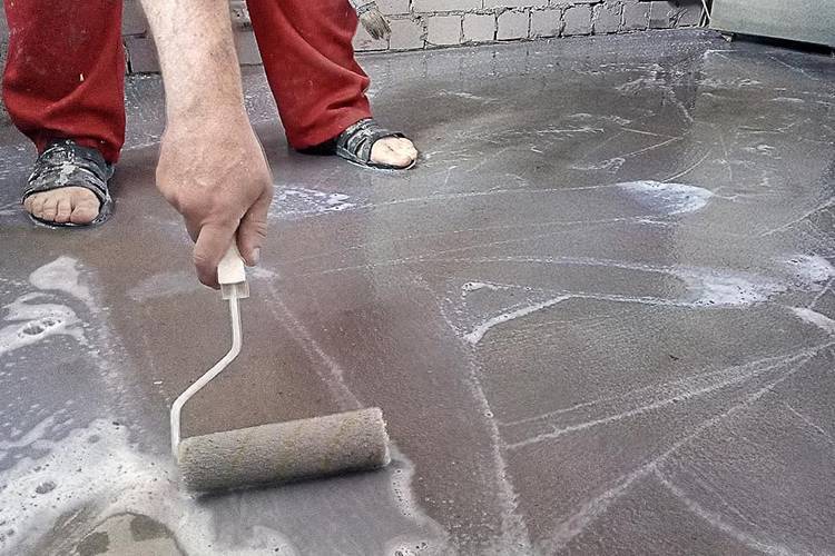 Важно также предварительно увлажнить бетонное основание, чтобы защитить гидроизолирующий материал от быстрого высыхания и предупредить образование трещин