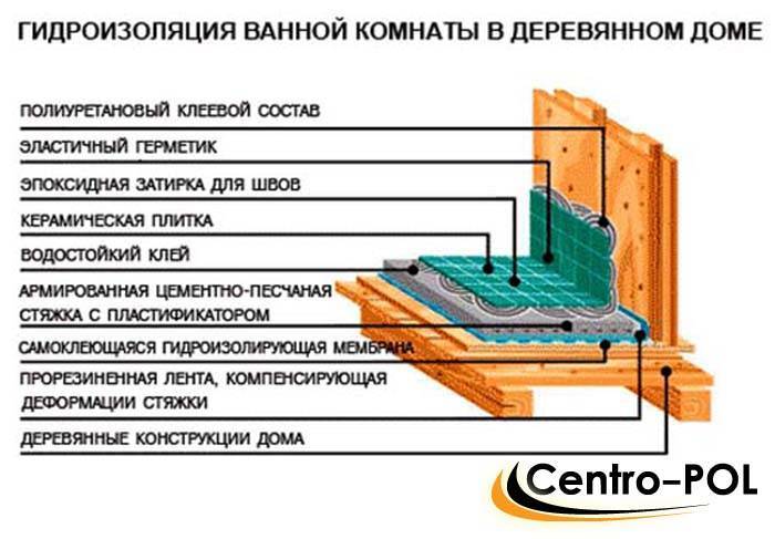 Схема гидроизоляции ванной комнаты и туалета