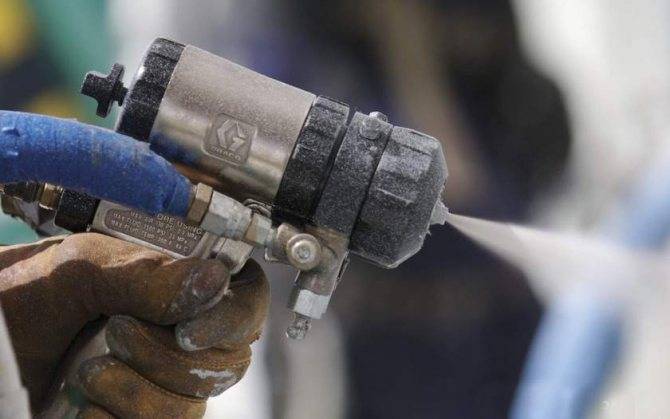 Напыление. В этом случае на стены и пол распыляют специальный влагостойкий состав, в основе которого используются полимеры или каучук. Через некоторое время после нанесения он застывает и превращается в плотную пленку, надежно защищающую от проникновения влаги.