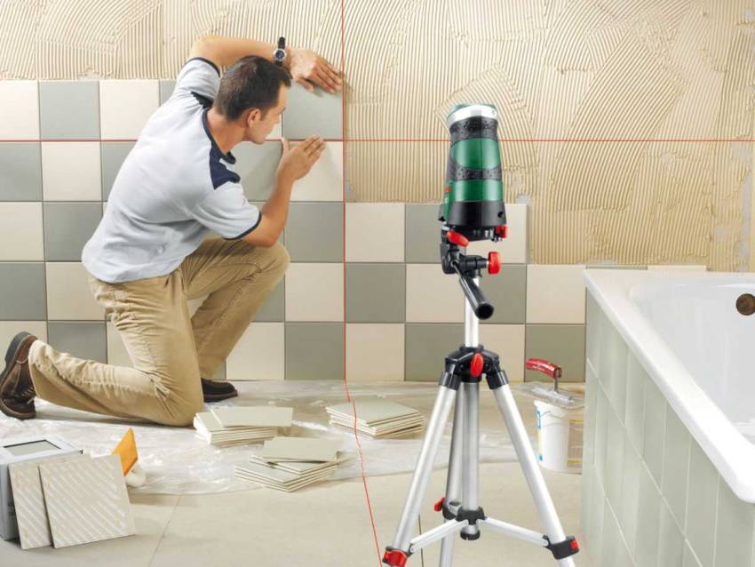 Важно использовать в процессе работы уровень, чтобы в дальнейшем вся плитка не «поплыла»