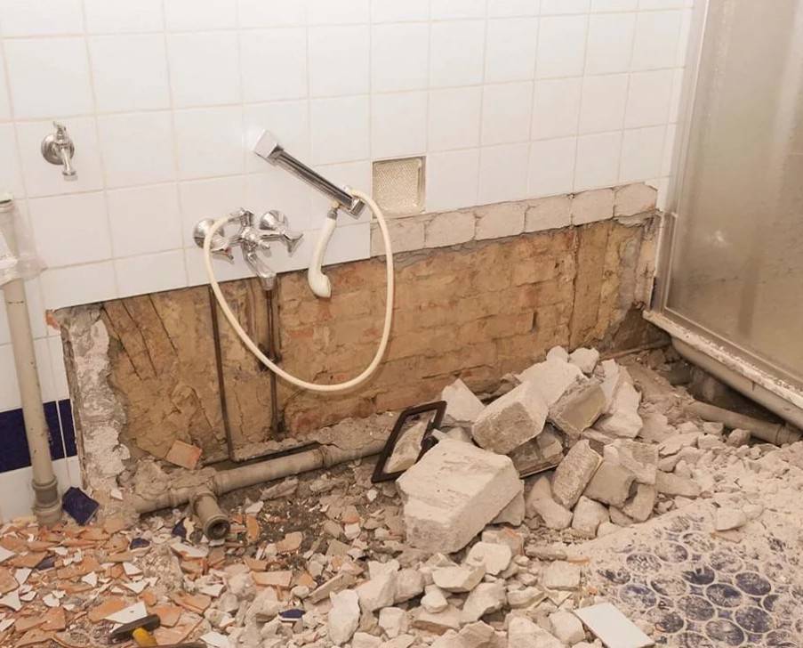 Перед укладкой плитки в туалете необходимо выровнять основание, очистить его от старых отделочных материалов. Ненужный кафель снимают при помощи перфоратора. Работу необходимо начинать с верхней части ограждающей конструкции, что позволит обезопасить человека от падающих пластов строительного материала.