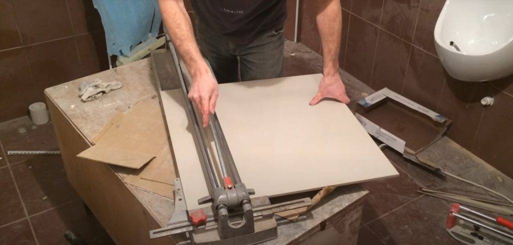 При применении ручного инструмента действовать нужно так же, как при резке стекла. Режущим колесом проводят черту по разметке на глазированной стороне кафеля. Затем выполняют слом.