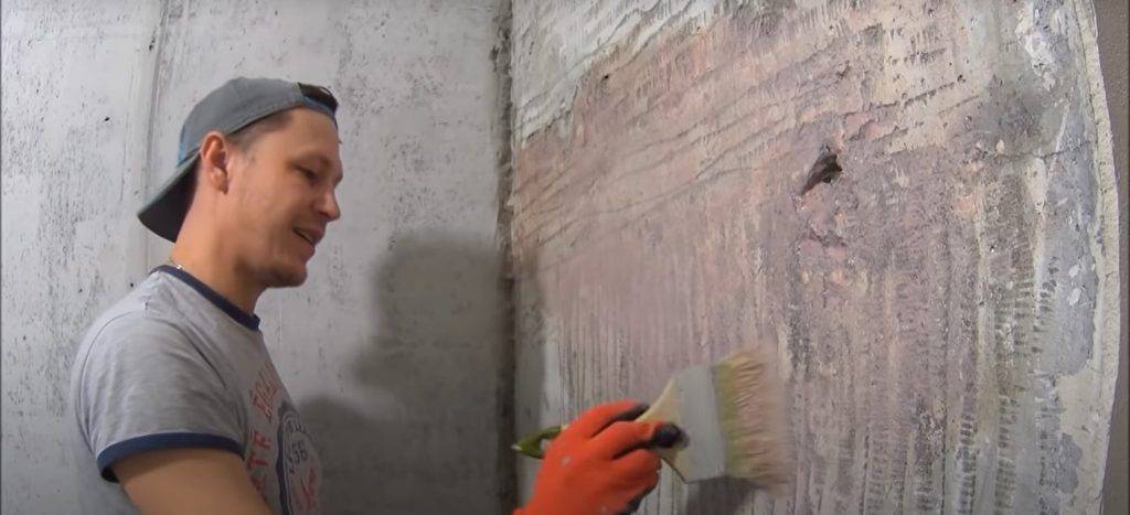 Вначале стены обильно покрываются грунтовкой глубокого проникновения с помощью валика.
