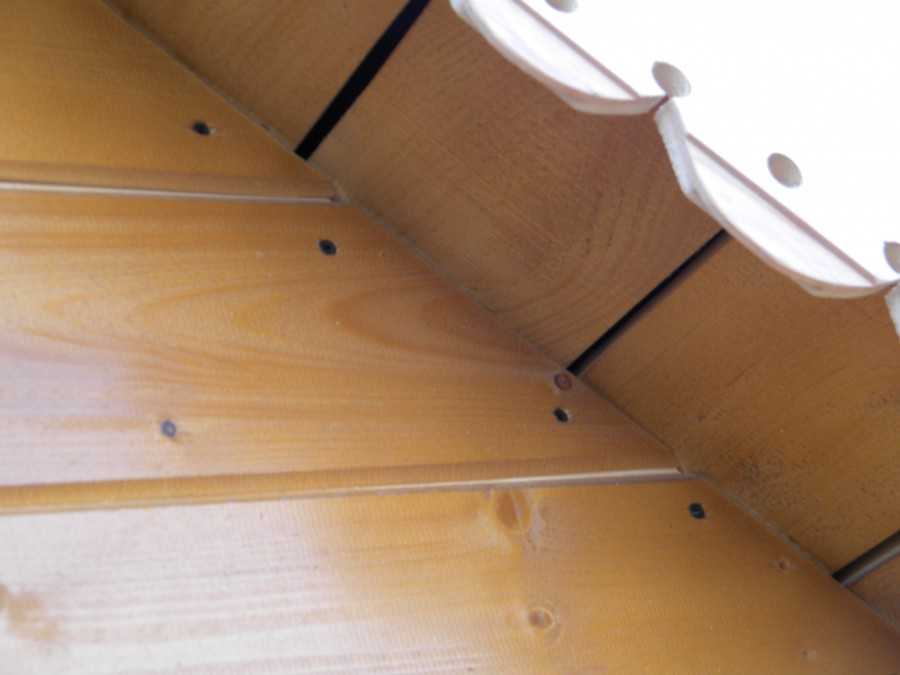 Это важная особенность, при которой вода не сможет попадать в паз при эксплуатации. Следующий ряд досок накладывается пазом на шипы, фиксация саморезами или гвоздями производится через доску. Снизу и сверху всей настенной кладки должны быть отступы в 3 см для вентиляции имитации.
