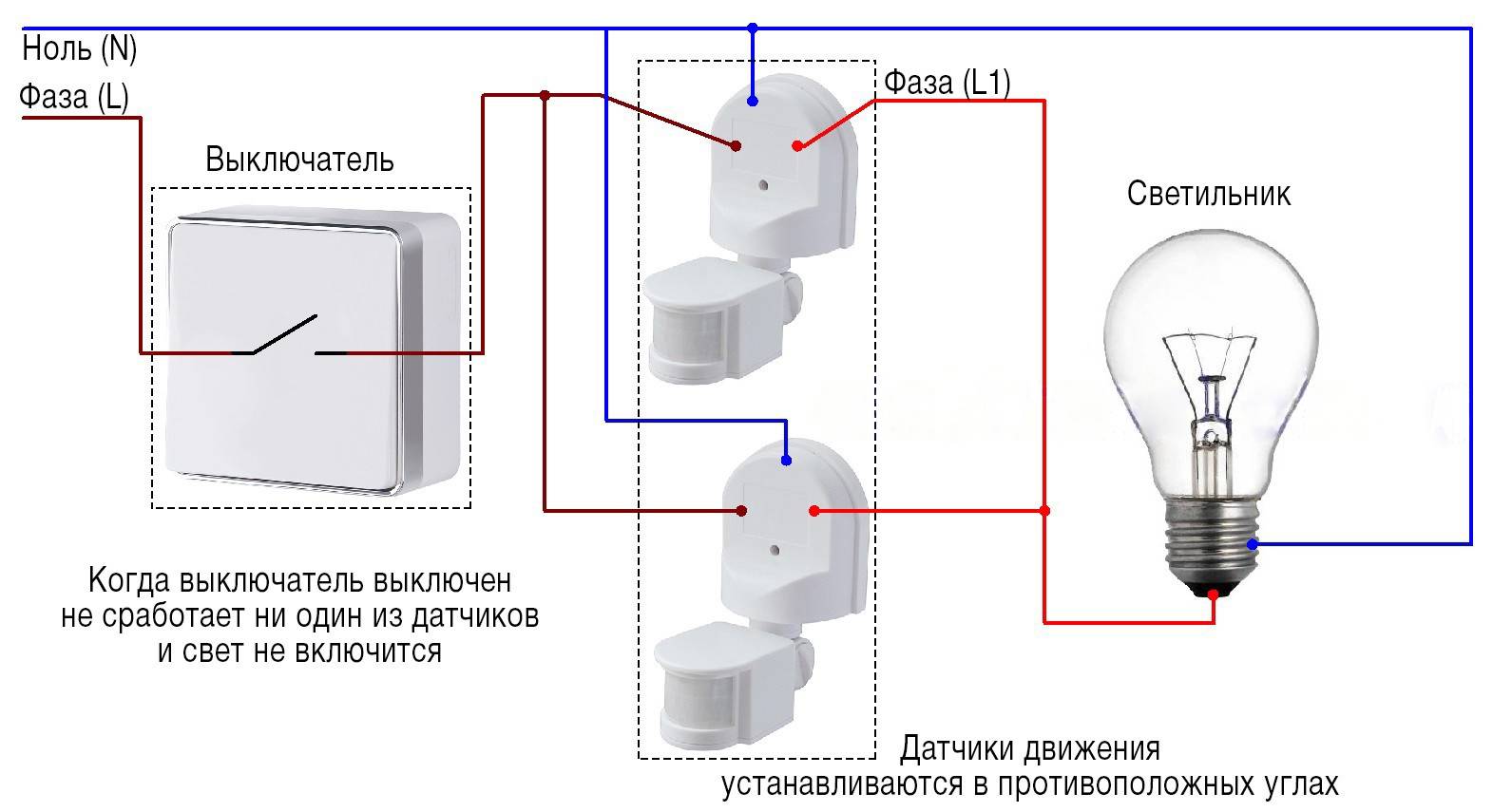 Схема датчиков движения для освещения
