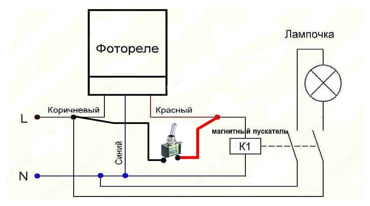 Фотореле любого производителя имеет три провода. Один из них — красный, другой — синий (может быть темно-зеленым) и третий может быть любого цвета, но обычно черный или коричневый. При подключении стоит помнить: