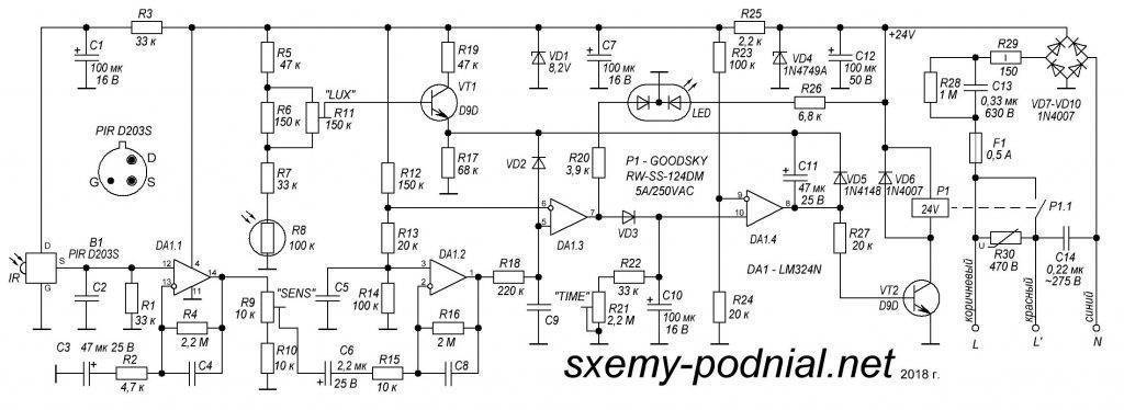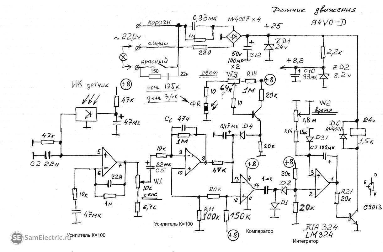 Таким образом, потребность в выключателе объясняется особыми требованиями, когда нужно чтобы светом в данном месте можно было управлять независимо от наличия чувствительного элемента. Необходимость в использовании схемы с выключателем возникает и в тех случаях, когда предполагается использовать чувствительный прибор не регулярно (только в определенные периоды).