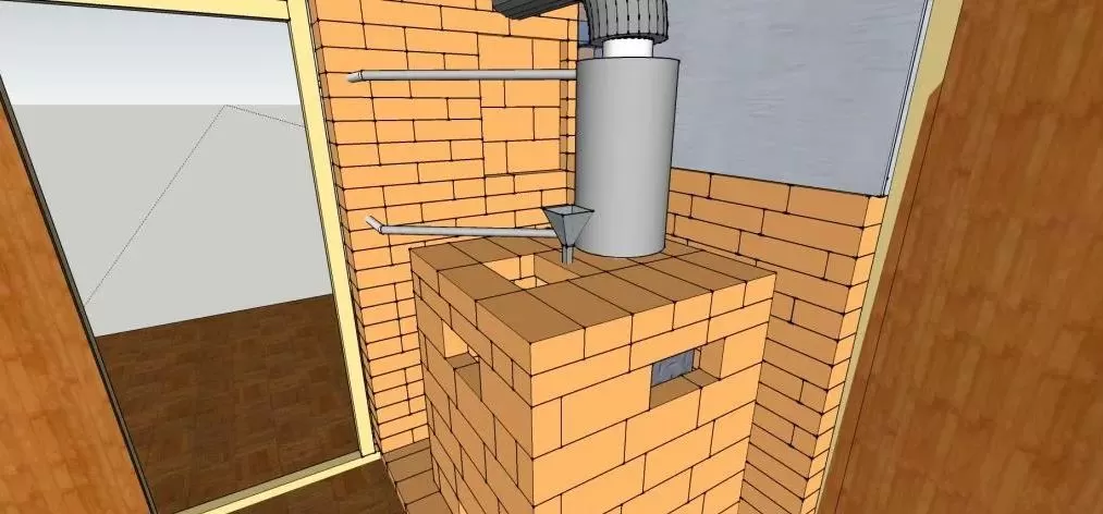 В нижней части щита оставляют небольшие отверстия (иногда – с топочными дверцами) для конвекции воздуха между кирпичной стеной и печкой.