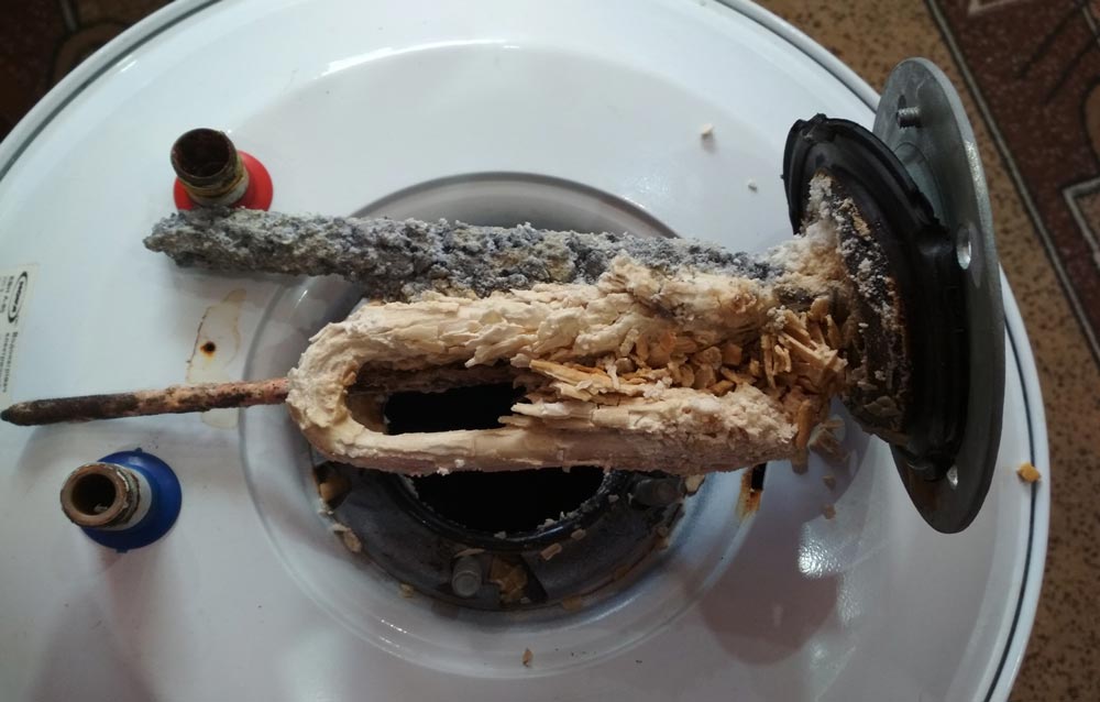 То есть погружают в покупное чистящее средство или раствор лимонной кислоты. В процессе очистки тэна осматривают магниевый анод. При износе его меняют на новую деталь