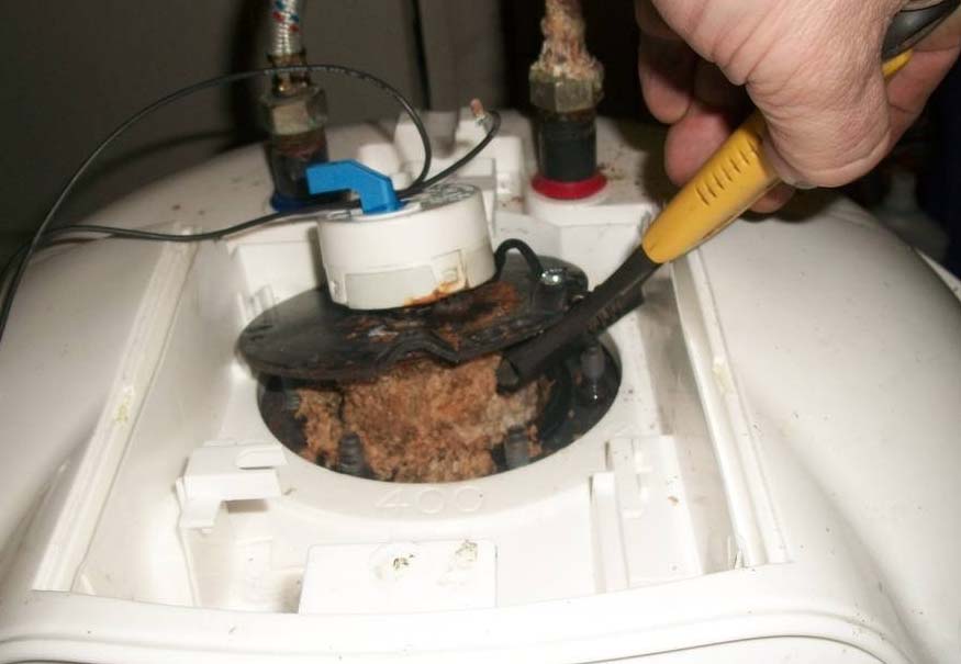 Поскольку внутренняя поверхность накопителя покрыта специальным защитным слоем, абразивное и механическое воздействие на нее крайне нежелательно. Как правило, основная масса известковых отложений и продуктов коррозии сосредоточена на поверхности ТЭНа и в области магниевого анода, поэтому для удаления накипи выполняют следующие операции.