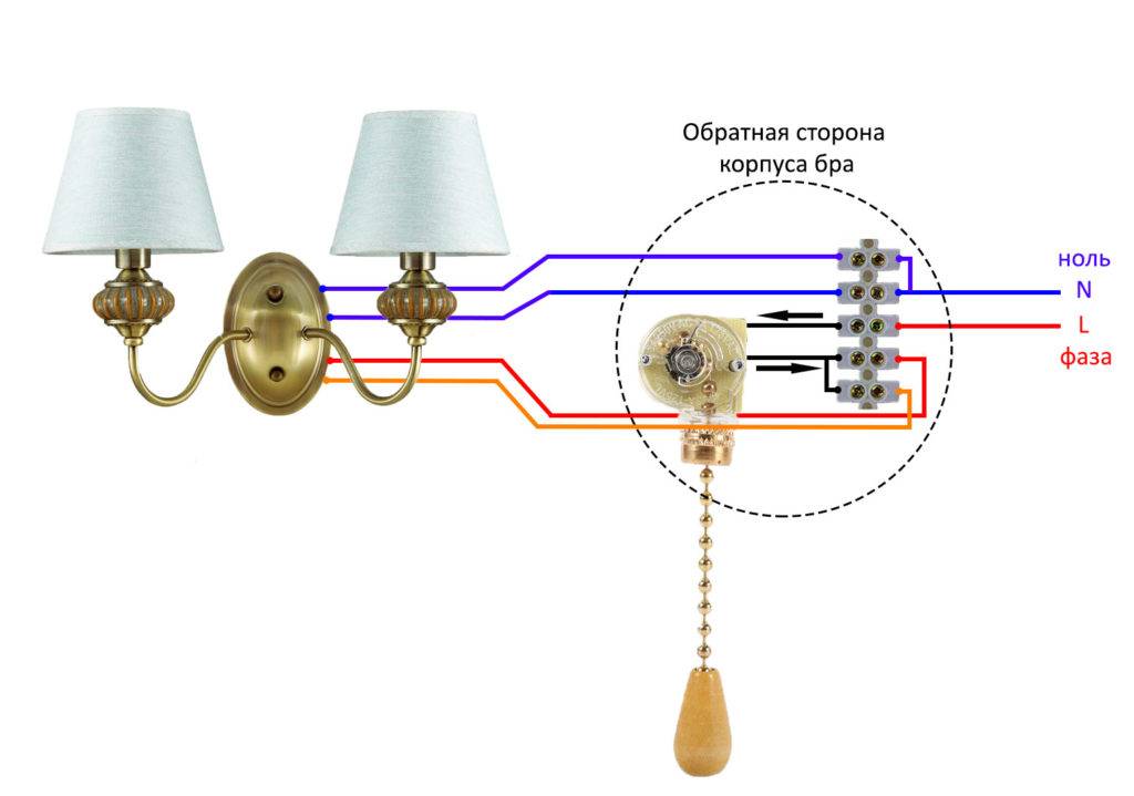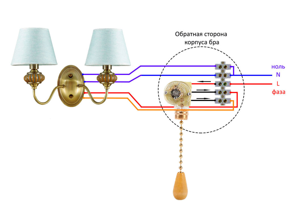 Подключение светильника с выключателем на веревочке с двумя лампами: руководство