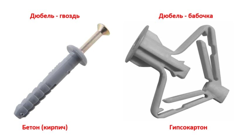 - дюбеля и шурупы;