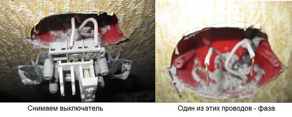 Лучше всего использовать уже готовую встроенную монтажную коробку от старого выключателя света. В ней размещены два провода, что устанавливают разрыв в цепи. Один идет непосредственно к средству освещения, а второй выходит из фазы.