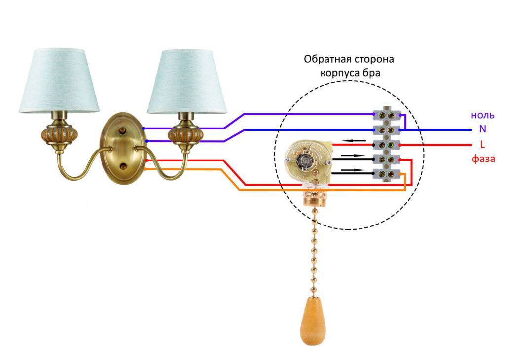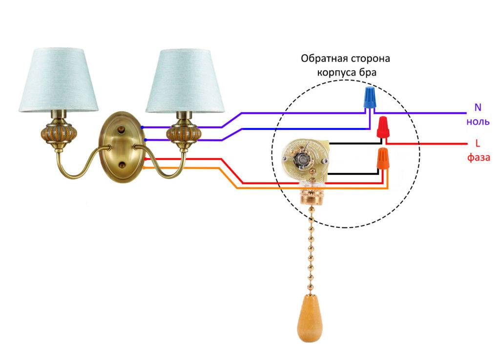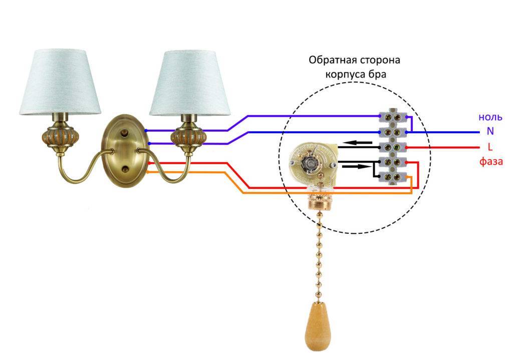 Подключение бра на две лампочки