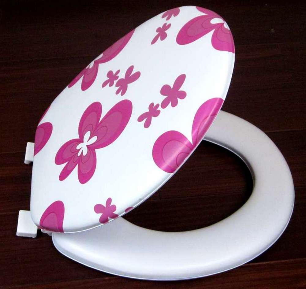 Но украсить унитаз можно крышкой любой расцветки, тем более что спрос на цветные сидения позволяет производителям экспериментировать и с цветом и с рисунком.