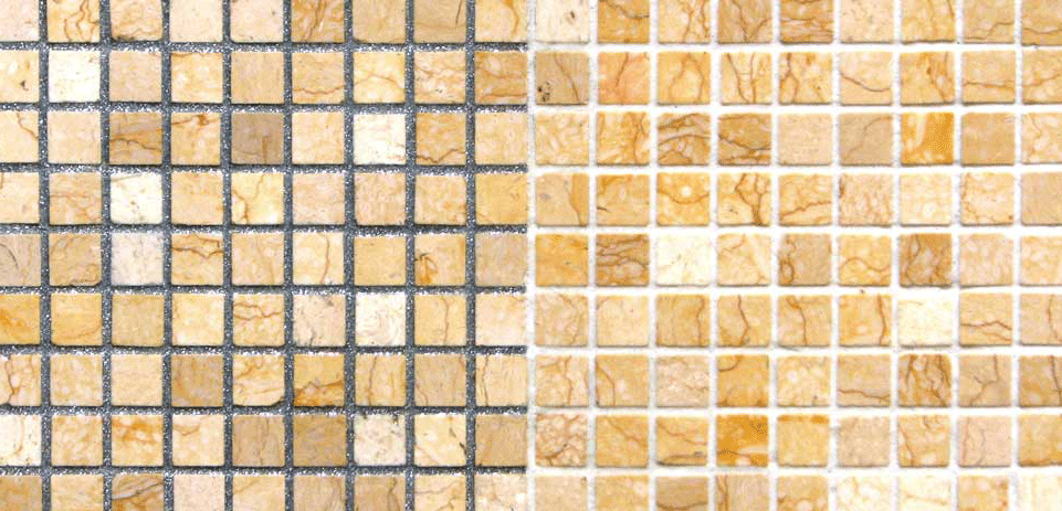 Для мозаики правило выбора цвета затирки другое: чем ближе цвет затирки к цвету мозаики, тем лучше. Дело в количестве швов, которое несоизмеримо больше, чем у плитки. Если цвет затирки швов будет существенно отличаться, результатом будет рябь в глазах от слишком большого количества мелких деталей.