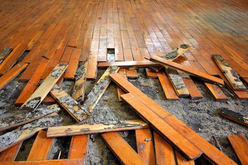 - Состояние лаг, стяжки и других элементов пирога старого чернового пола, на который укладывалась древесина при монтаже.