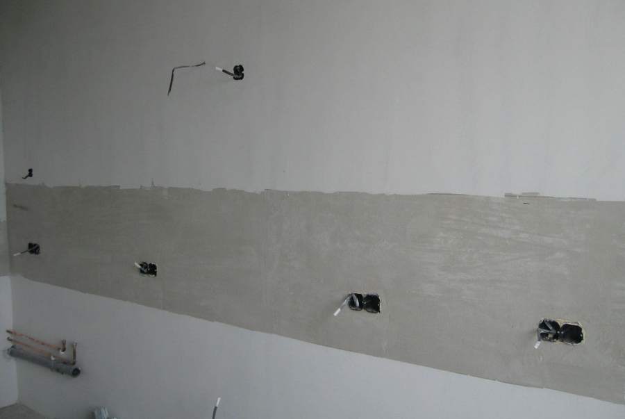 нанесите приготовленную смесь на стену, примерно на 2 ряда снизу;
