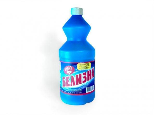 - половину стакана Белизны слегка разбавляют водой;
