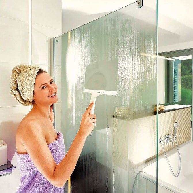 Для того, чтобы на стеклянной поверхности не оставались следы от брызг, регулярно обрабатывайте ее специальным водоотталкивающим составом. Часто стеклянные шторки продаются уже со специальным покрытием. Однако срок его действия не так уж велик – 6-7 месяцев.