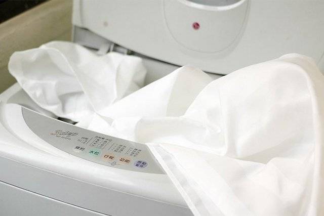 Чтобы полностью качественно отстирать подготовленную шторку, ее закладывают в барабан вместе с двумя махровыми полотенцами среднего размера – это позволит изделию лучше отстираться за счет контакта со структурными поверхностями.