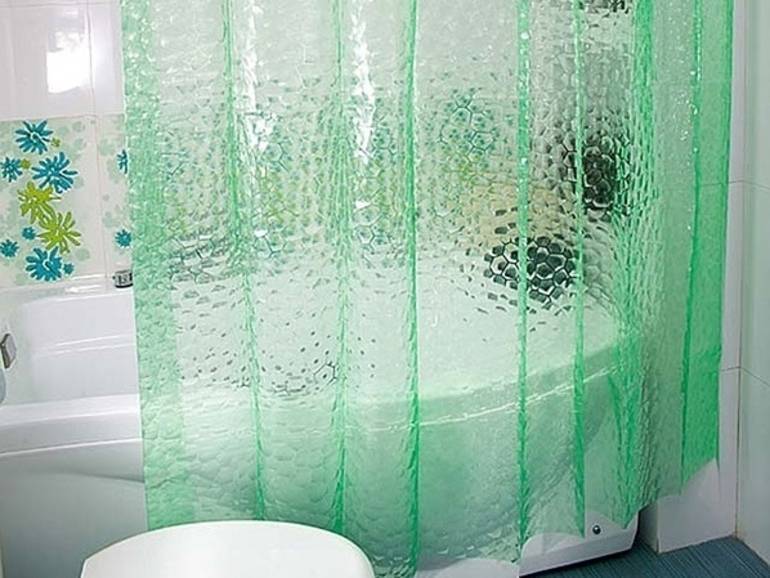 Данный вид шторок для ванной – самый бюджетный. Они довольно тонкие, поэтому их следует стирать вручную с добавлением геля. Порошок с абразивными частицами может повредить изделию. При этом многие хозяйки меняют полиэтиленовые шторки на новые из-за невысокой цены.