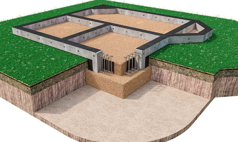 Заливается этот вид фундамента по всему периметру строящегося здания и несущих стен в виде железобетонной ленты. Таким образом, он передает всю нагрузку конструкции на землю внизу.