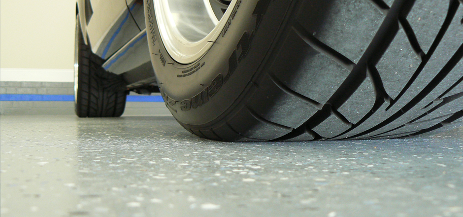 Керамику в виде плитки используют по бетонному основанию. Применяют керамогранит, т. к. обычный бытовой кафель быстро растрескается от колес. Покрытие прочное, не разрушается от скачков температуры, действия бензина, технического масла.