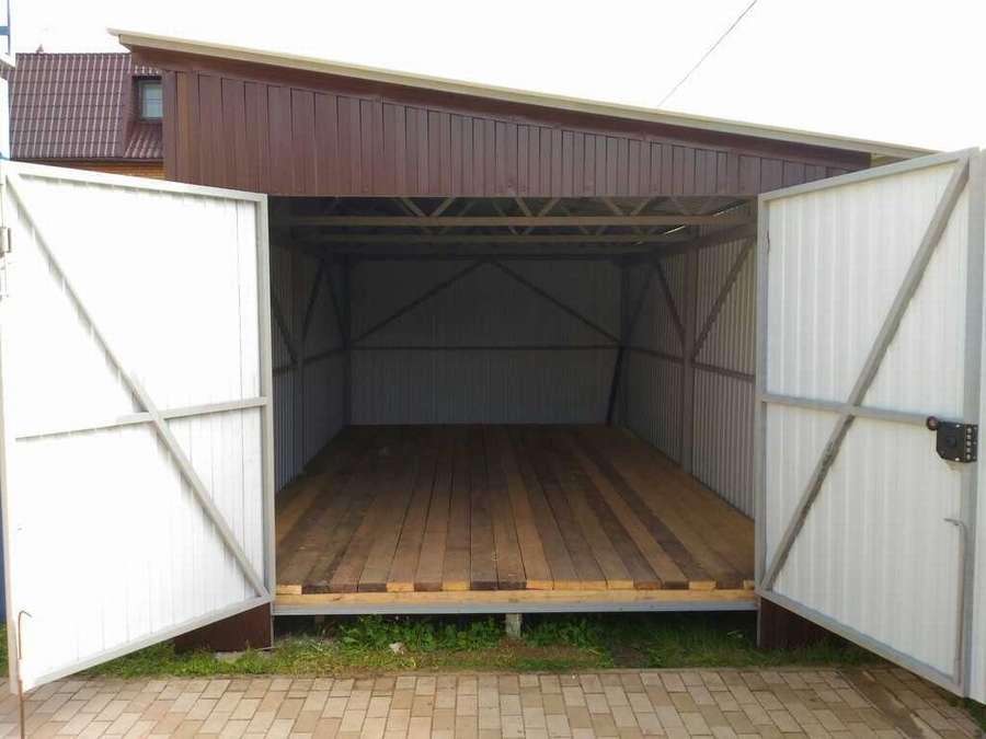 Если выбор падает на двухслойную крышу, то первый ее слой можно дополнительно укрепить металлическими рейками. Полы металлических гаражей обычно ничем обшивают, оставляя пустую почву. Можно также застелить пол деревянными досками.