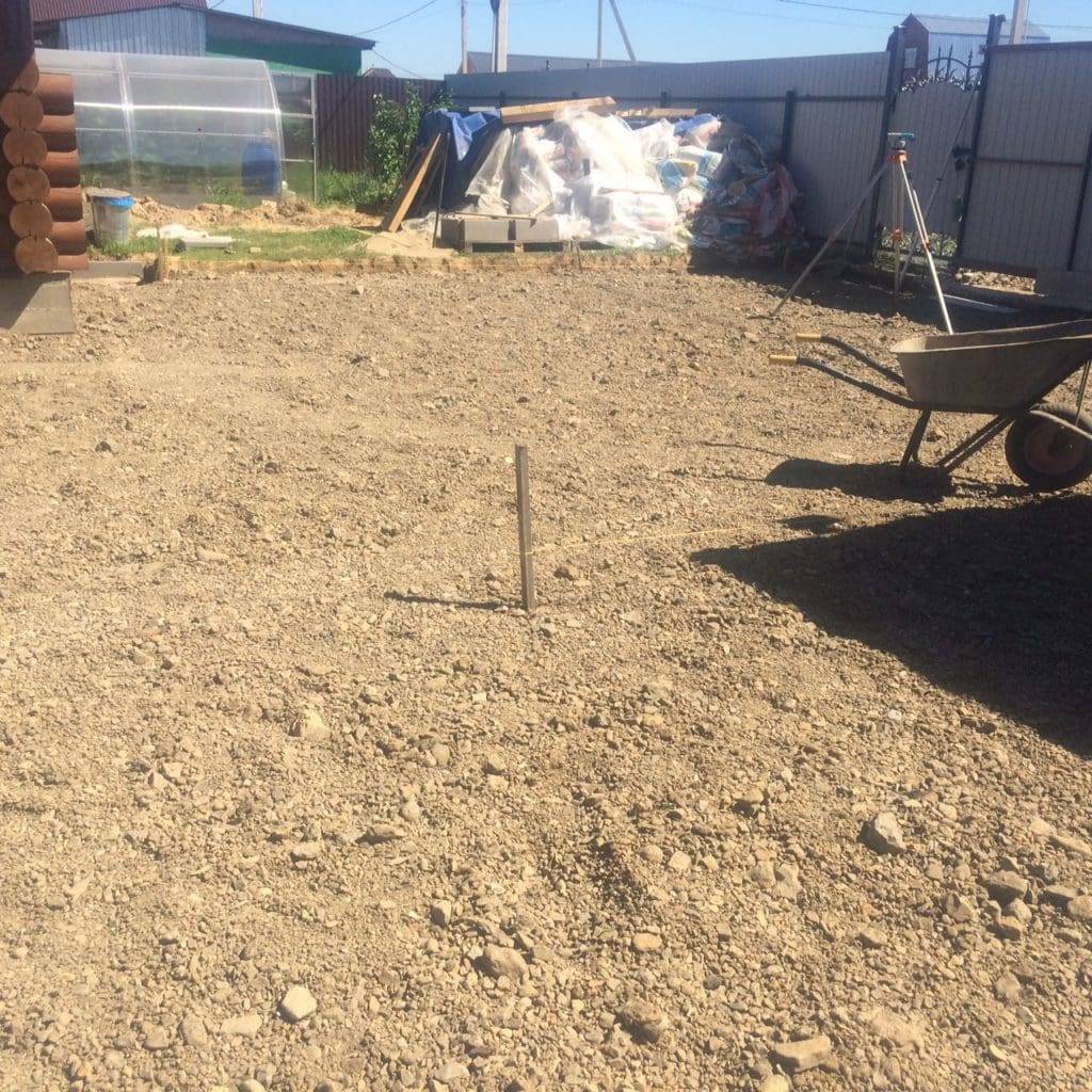 Удалить верхний слой грунта. Глубина снимаемого слоя зависит от интенсивности эксплуатации покрытия. Как правило, она находится в пределах 15–50 см. Если почва слабая, то можно дополнительно уплотнить. Поверх выкопанной ямы высыпать отсев. Если вы хотите выполнить качественное основание, то минимальное количество его слоев должно быть равным 3.