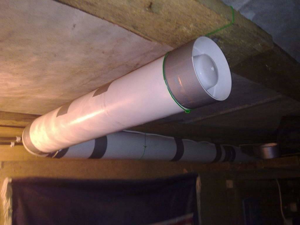 Сложнее с гаражом, в котором есть подвал, как место хранения. Для этого придется делать или две вытяжки: одну для подвала, другую для самого гаражного пространства, или одну общую, которая будет проходить от подвала через пол и кровлю. В этом случае к стояку придется подсоединить небольшой длины участок, через который будет производиться отток воздуха из помещения. Не забываем организовать приточный участок. Это все та же труба, которая с улицы через одну из стен входит в подвал с его потолка.