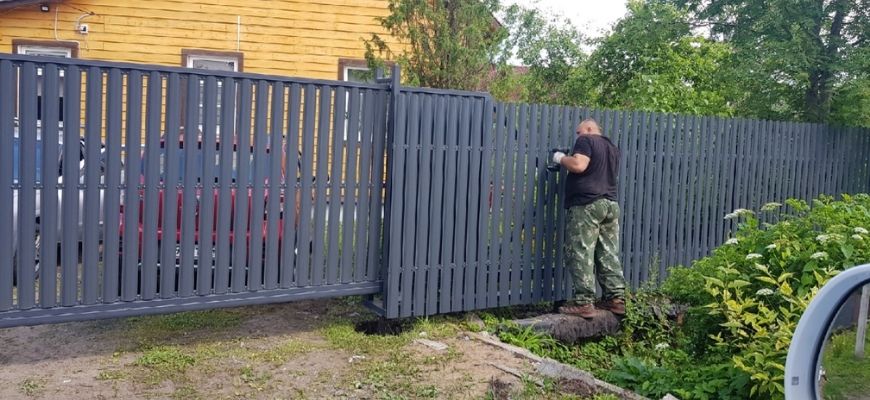 Установка забора из металлического штакетника