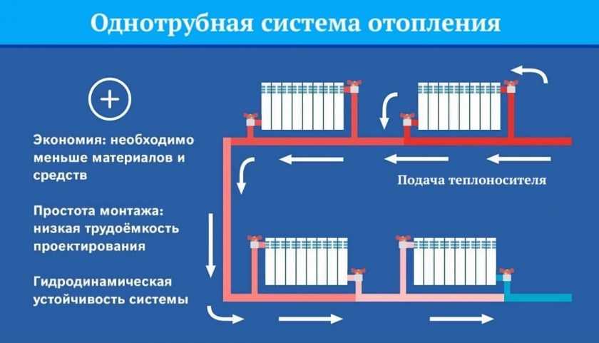 Преимущества однотрубной разводки: