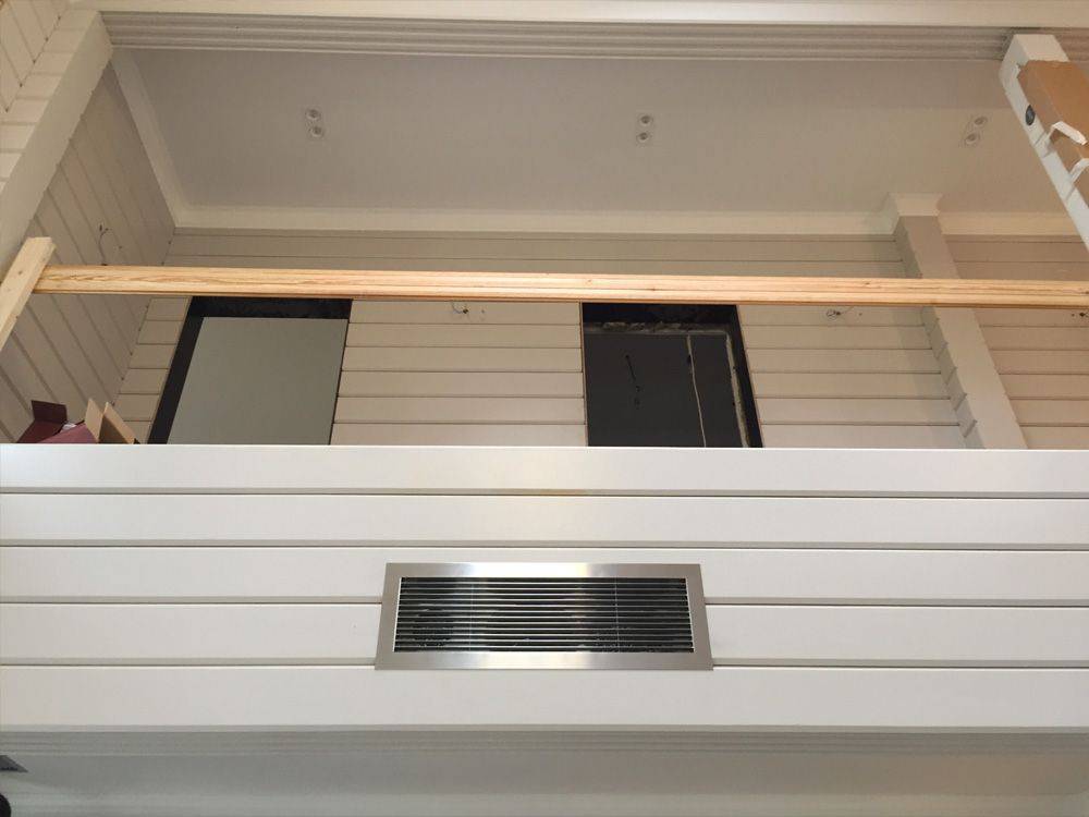 - Входное отверстие из комнаты в канал находится под потолочным перекрытием.