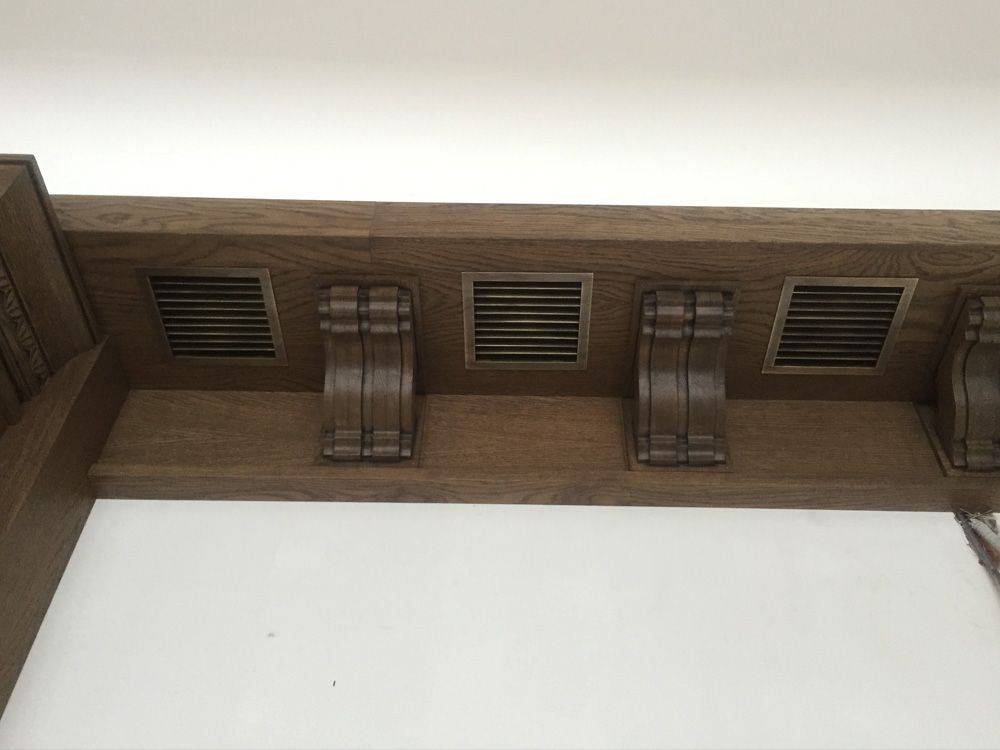 Створки здесь могут располагаться под любым углом, но обычно изготавливается под острым в 45 градусов. Жалюзи не регулируются. Эти изделия отлично смотрятся в любом исполнении: из латуни, нержавеющей стали, со старением и т.д.