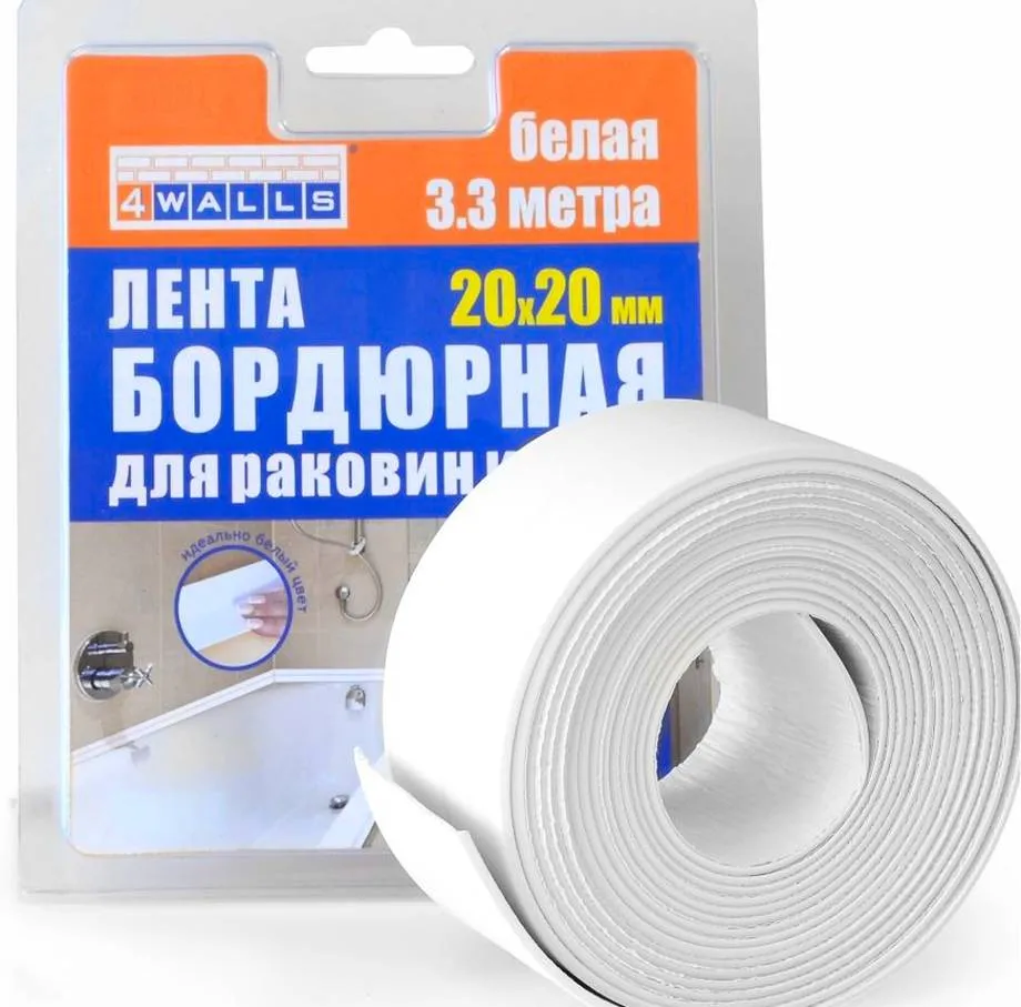 Гибкая бордюрная лента на самоклеящейся основе является самым быстрым, удобным и недорогим способом устранения зазора между ванной и кафелем. С клеевого слоя снимается защитная пленка, и бордюр плотно прижимается к поверхности стены и ванны одновременно.
