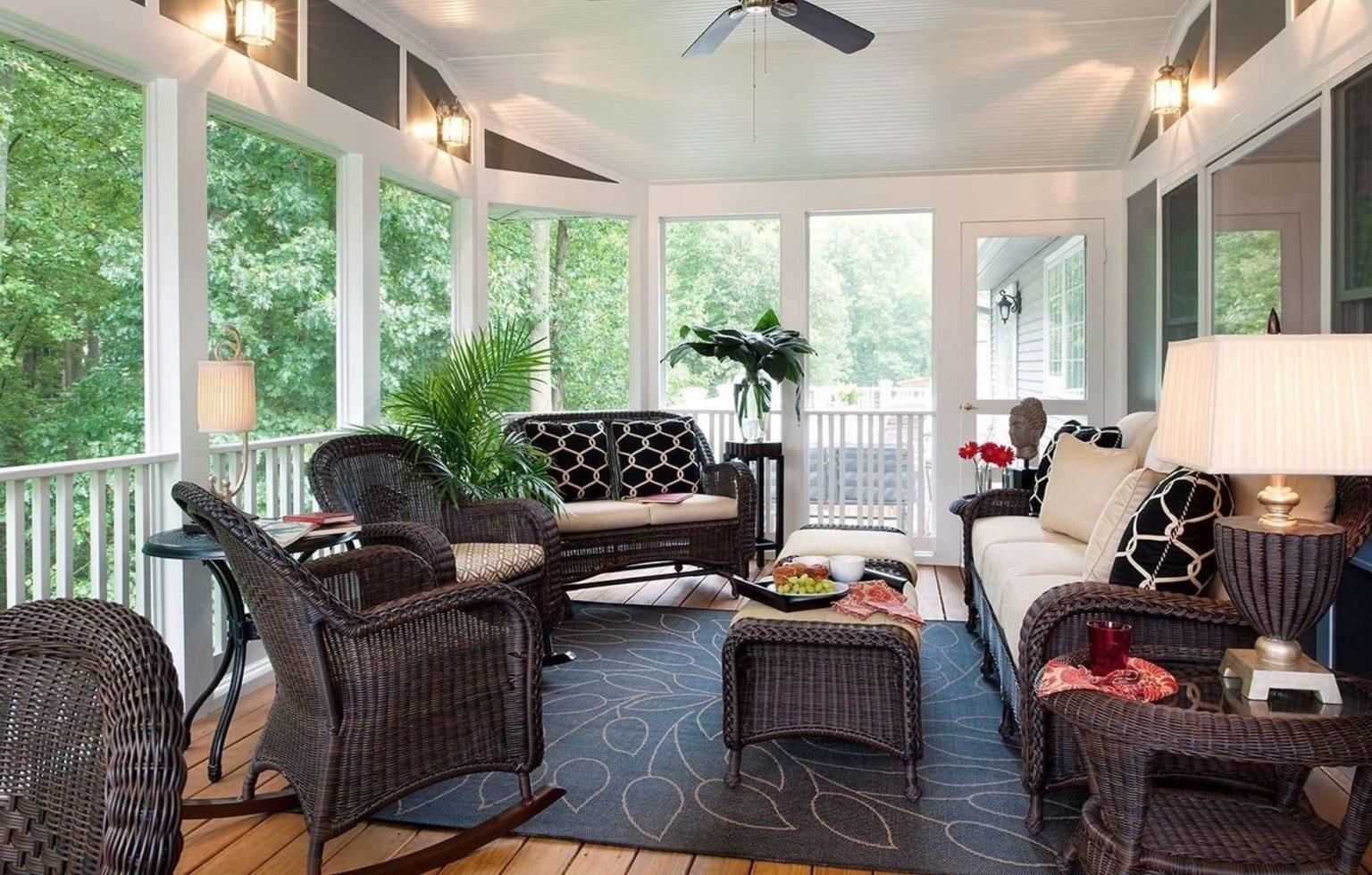 - мебель и другие предметы интерьера на открытых верандах быстро покрываются пылью или отсыревают, поэтому они должны изготавливаться из влагостойких материалов.