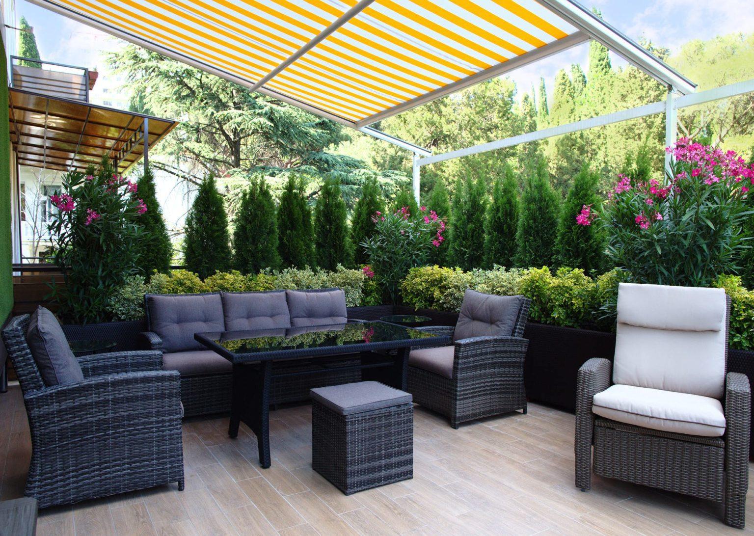 - раздвижной каркас этой пристройки позволяет регулировать области затенения и укрыть от дождя;