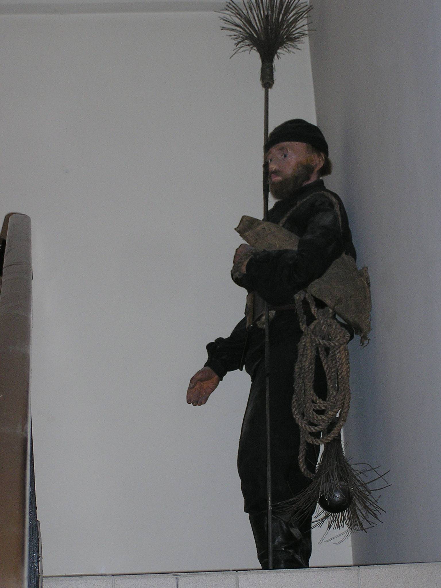 Аккуратно поднявшись на крышу, обязательно пристегнитесь страховочным тросом к надежному элементу крыши. Главным инструментом трубочиста является ершик на веревке, с привязанным грузиком.