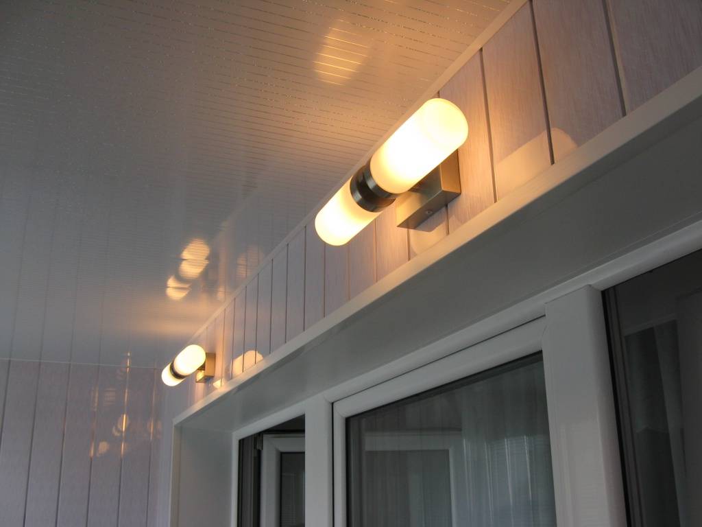 точечное освещение — это вариант для потолка балкона, обшитого деревом или ПВХ панелями. Существуют разные типы точечных светильников (диодные, галогенные, накаливания), которые различаются по энергопотреблению и способу подключения;