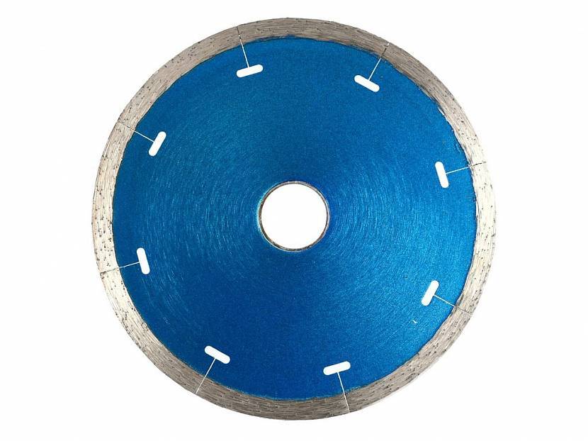Сплошной для «мокрой» резки. Здесь раскрой производится с периодическим смачиванием диска водой или специальным составом с целью его охлаждения. Главное достоинство такого круга состоит в том, что резка керамогранита без сколов происходит (зависит от природы керамогранита: толщина, фактура, качество).