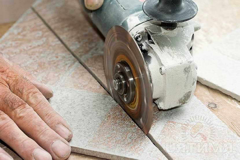 Существует два варианта работы с болгаркой при необходимости разрезать плитку: