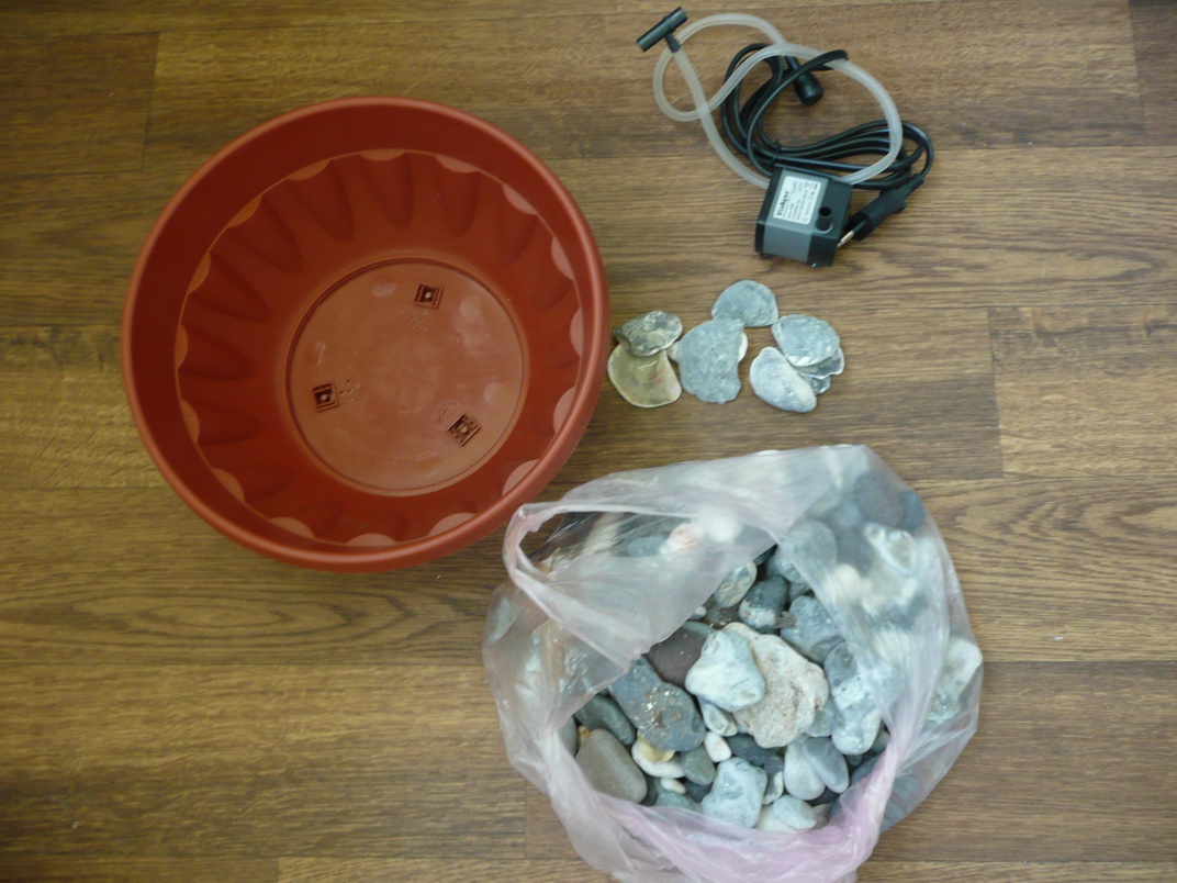 Если нет большой раковины, то ее также можно заменить на любой подходящий предмет. Главное, чтобы в нем можно было проделать отверстие для шланга. Дизайн декоративного фонтана для комнаты полностью зависит от фантазии его создателя.