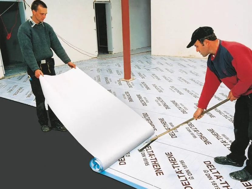 Если делаете водяной подогрев пола. Тут основная задача не допустить проникновения влаги вниз, если вдруг прохудится труба. Поэтому на плиту под стяжку кладут гидроизоляционный материал.
