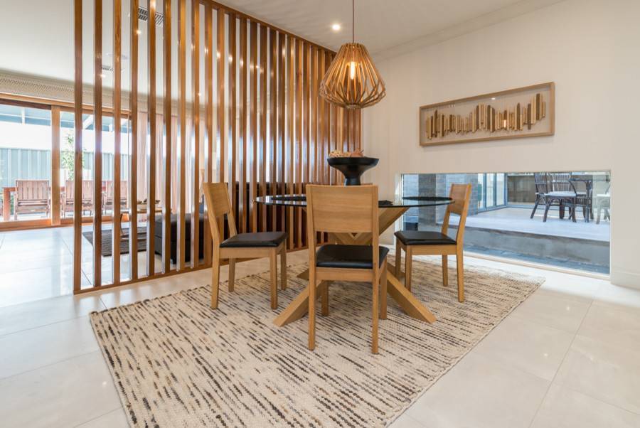 - декоративная стационарная перегородка – создает 2 изолированных по стилю помещения, часто используется для отделения прихожей от гостиной или столовой от кухни;