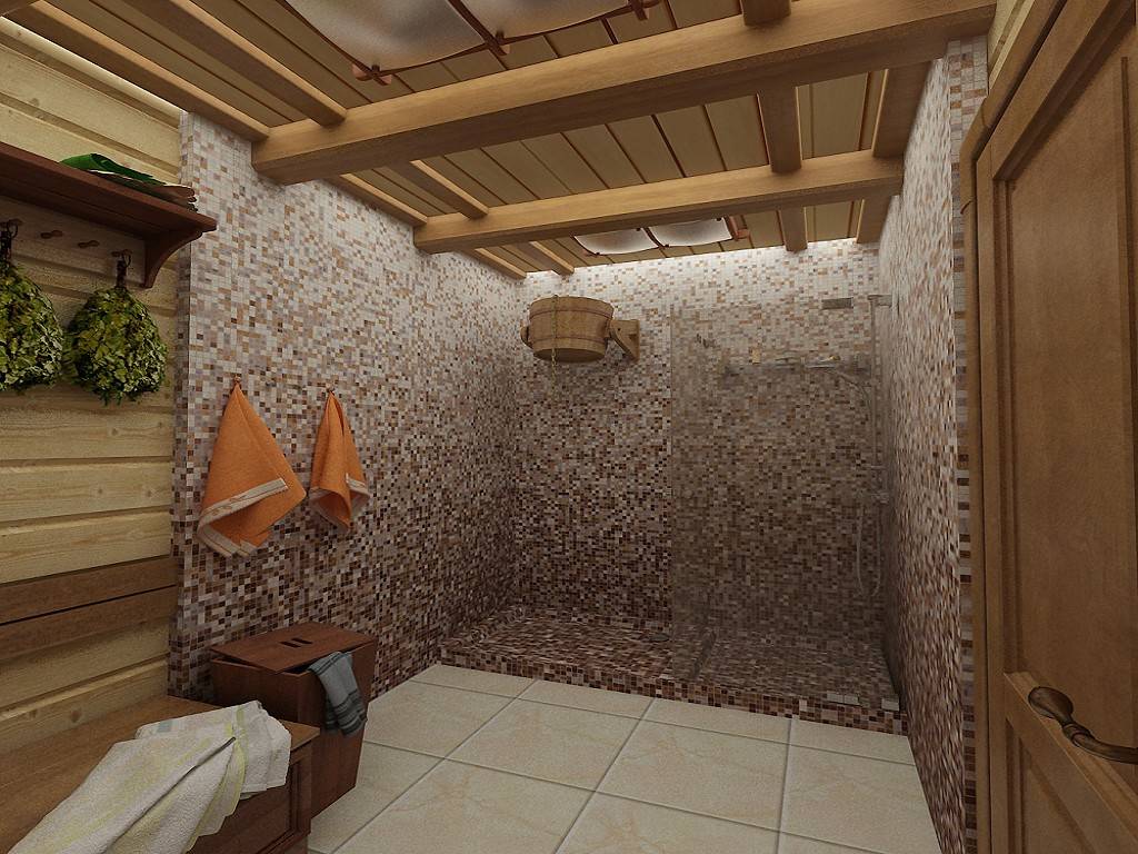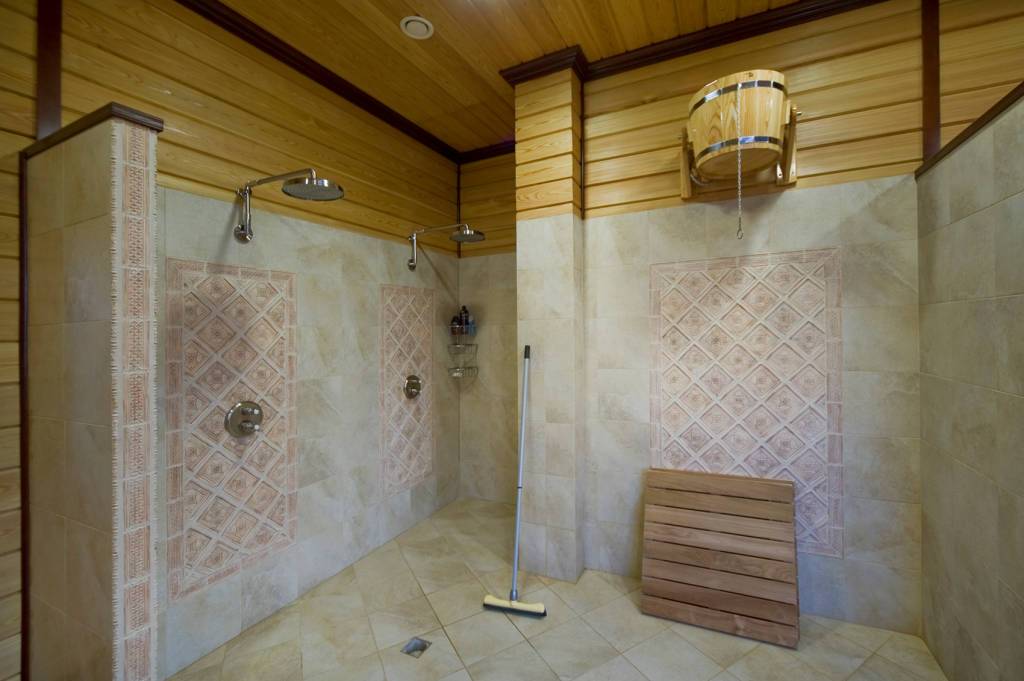 Что касается моечной, то в ней плитку обычно используют для отделки и стен, и пола. Влажность здесь во время процедур очень высокая, так что покрытие должно быть с низким водопоглощением