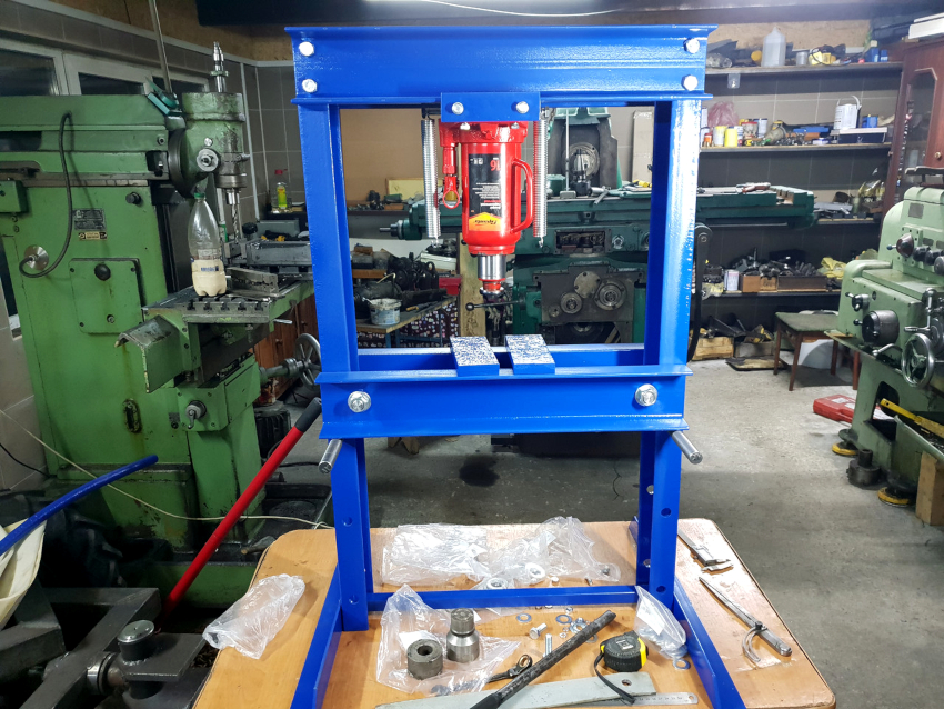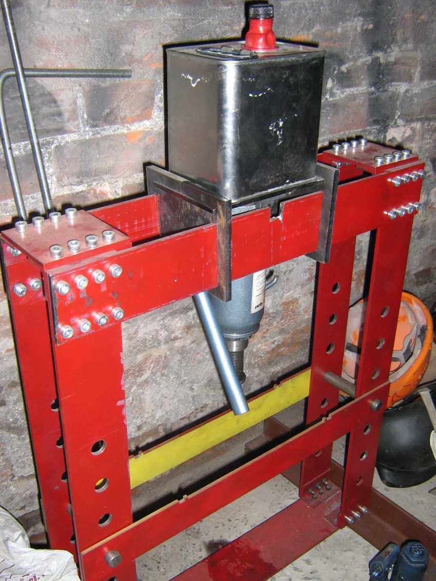 - Самодельный пресс для гаража готов. Остается выполнить шлифовку и покраску для придания товарного вида.