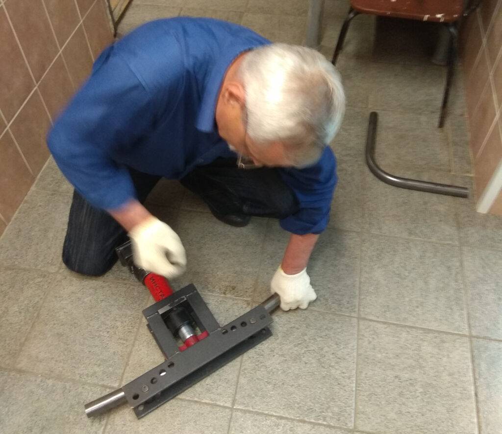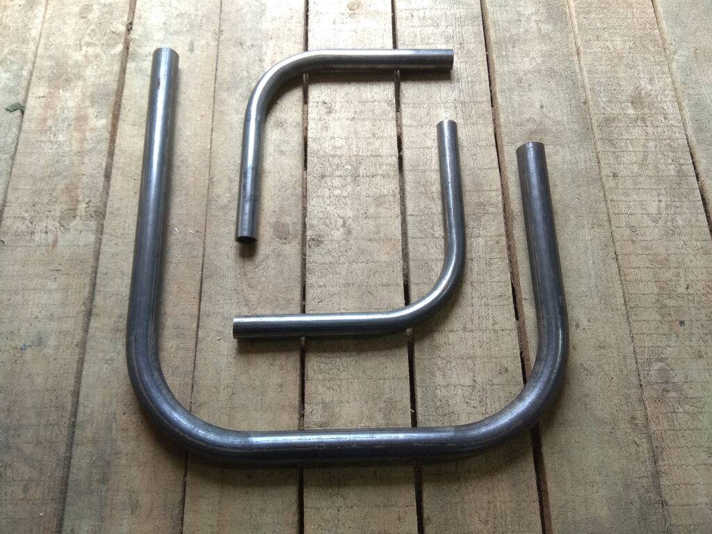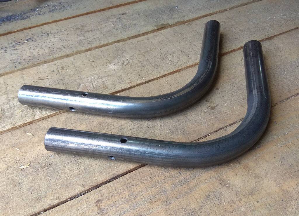 Качественную гибку труб можно сделать только при использовании гибочного станка для труб (его можно взять в аренду). Я специально нарезал круглые трубы с запасом 20 см, так как работал с гибочным станком впервые и не хотел испортить заготовки. После того как мне согнули все трубы я отрезал лишний запас и получилось очень даже неплохо.